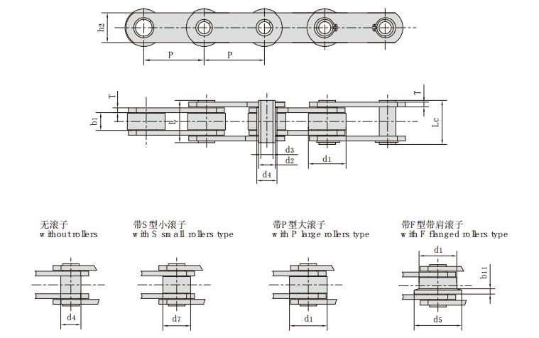 鏈號 節(jié)距 滾子尺寸 套筒直徑 鏈板高度 內(nèi)節(jié)內(nèi)寬 銷軸直徑 銷軸長度 鏈板厚度 抗拉強度